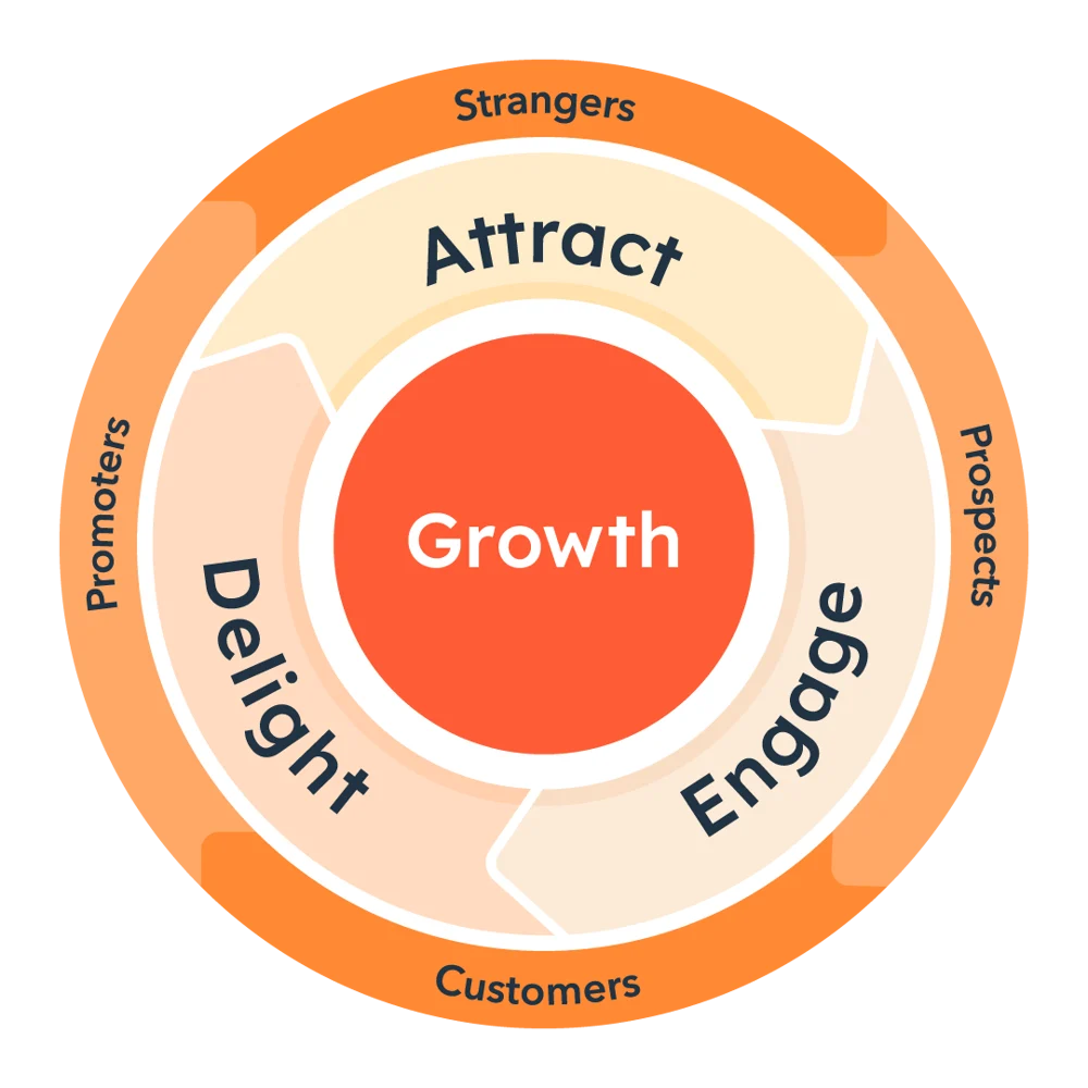 هذا ما يسمى بالقمع التسويقي، ولكن هذا القمع ليس دائماً هو أمثل حل لبناء نظام توسّعي فعّال لمشروعك؛ حيث ينظر نظام القمع التسويقي للعميل على أنه النتيجة النهائية في حين أن هذا لا يضمن لك مبيعاتٍ مستمرة. على الصعيد الآخر هناك نظام يسمى flywheel أو “العجلة الدوارة” وهو مبني على خلق زخم من الطاقة عندما تبدأ في خلق تجربة عميل مثالية… العميل يصبح محركاً للنمو القادم وليس هو نتيجتك النهائية…